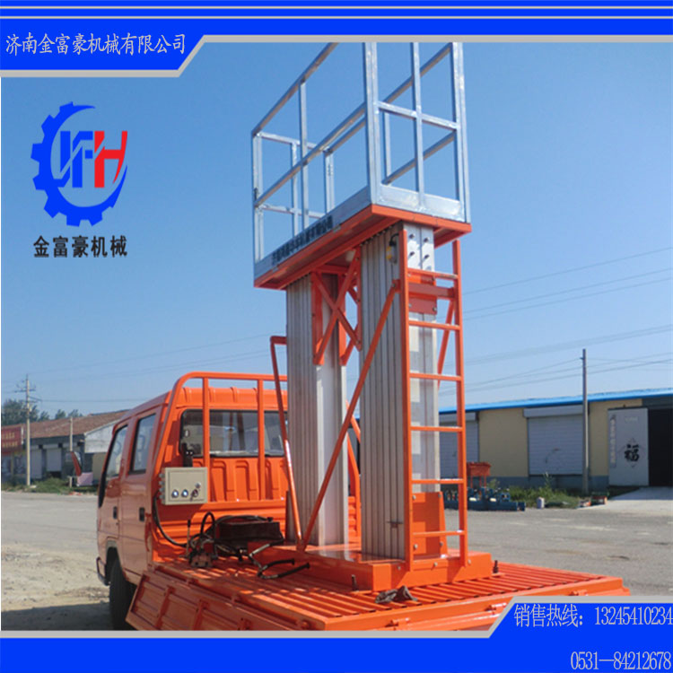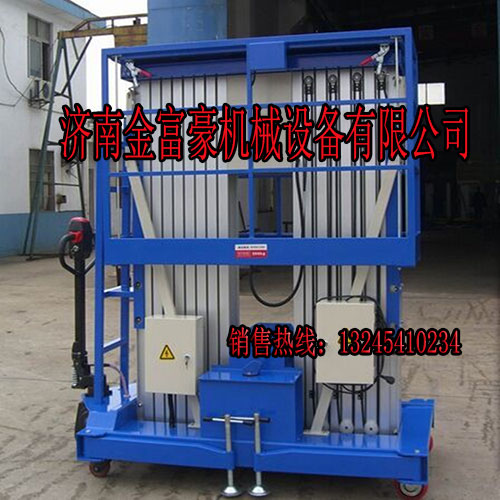 1、單組高強(qiáng)度鋁合金桅柱升降機(jī),整機(jī)重量輕,機(jī)動性好,適合單人操作.