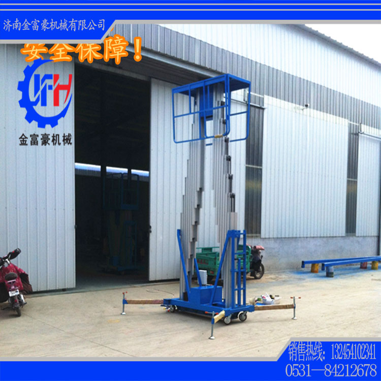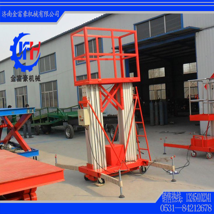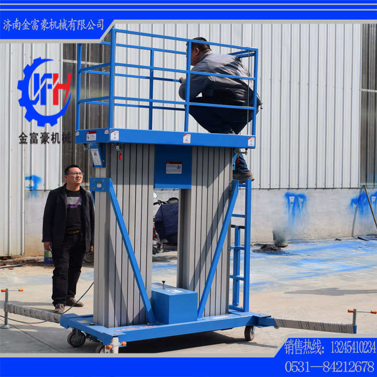 雙立柱鋁合金升降機(jī):全新設(shè)計的新一代產(chǎn)品,整體采用高強(qiáng)度鋁型材精制而成由于型材強(qiáng)度高,使升降臺的偏轉(zhuǎn)與擺動極小。采用雙桅柱式結(jié)構(gòu),載重量大,平臺面積大,穩(wěn)定性極好,運(yùn)轉(zhuǎn)靈活,推行方便。它輕盈的外觀,能在極小的空間內(nèi)發(fā)揮最高的舉升能力。該升降機(jī)廣泛用于廠房、賓館、大廈、商場、車站、機(jī)場、體育場等??捎米麟娏€路、照明電器、高架管道等安裝維護(hù),高空清潔等單人工作的高空作業(yè)臺
