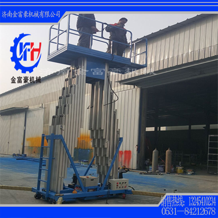 鋁合金移動式:產(chǎn)品代表有單立柱鋁合金升降機(jī),雙立柱鋁合金升降機(jī),三立柱鋁合金升降機(jī),四立柱鋁合金升降機(jī)。新設(shè)計的新一代產(chǎn)品,整體采用高強(qiáng)度鋁型材精制而成,由于型材強(qiáng)度高,使升降機(jī)的偏轉(zhuǎn)與擺動極小。采用桅柱式結(jié)構(gòu),載重量大,平臺面積大,穩(wěn)定性極好,運轉(zhuǎn)靈活,推行方便。靠四輪移動,具有造型美觀、體積小、重量輕、升降平衡、安全可靠等優(yōu)點,并能夠上下操作,廣泛用于工廠、賓館、餐廳、車站、機(jī)場影劇院、展覽館等場所,是保養(yǎng)機(jī)具、油漆裝修、調(diào)換燈具、電器、清潔保養(yǎng)等用途的.