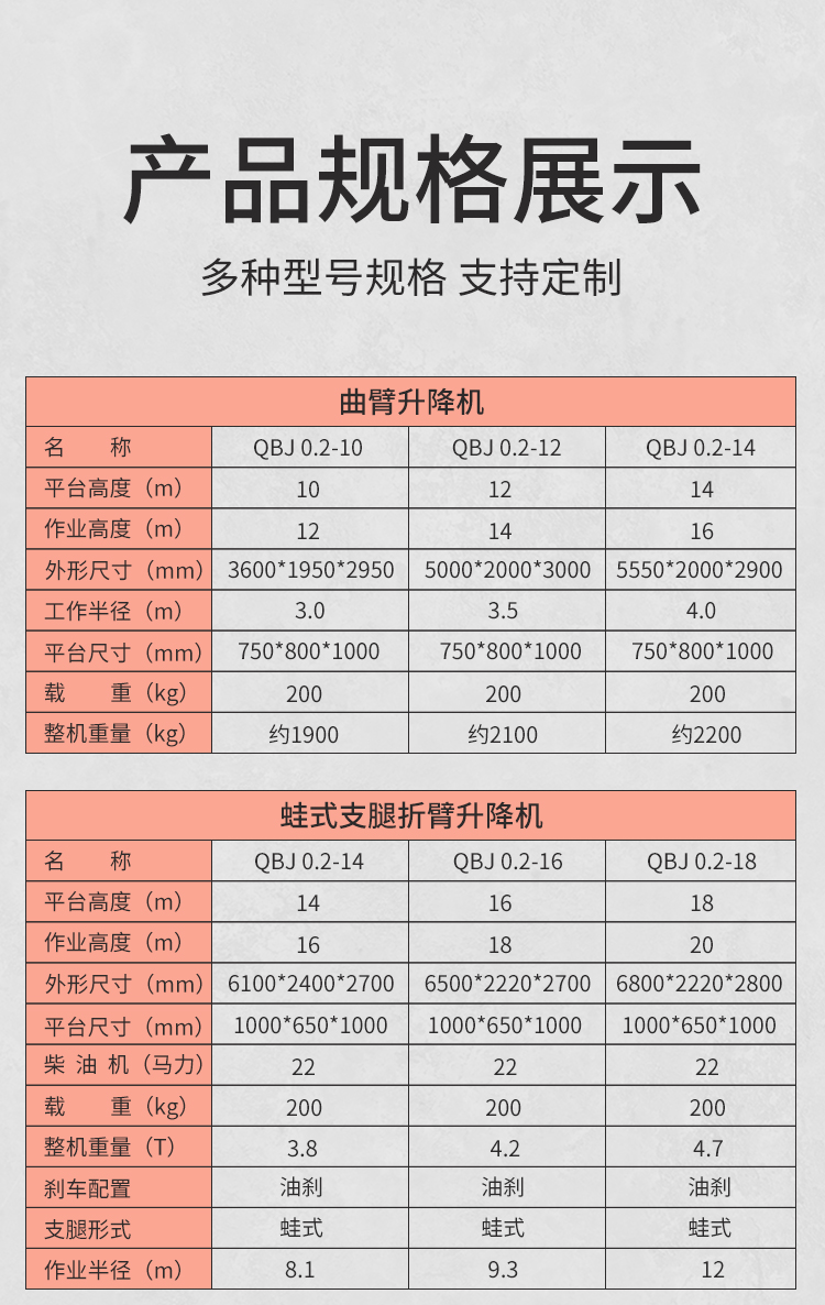 曲臂式升降作業(yè)平臺(tái)供室內(nèi)外高空作業(yè)使用。具有自行走、自支腿、操作簡單、使用方便、作業(yè)面大,特別是能夠跨越一定障礙或在一處升降可進(jìn)行多點(diǎn)高空作業(yè)的特點(diǎn)。廣泛用于公路、碼頭、商場(chǎng)、體育場(chǎng)館、小區(qū)物業(yè)、廠礦車間大范圍作業(yè)。動(dòng)力可選擇柴油機(jī)、電瓶、柴電兩用。